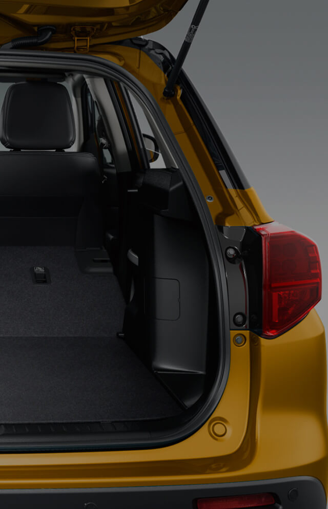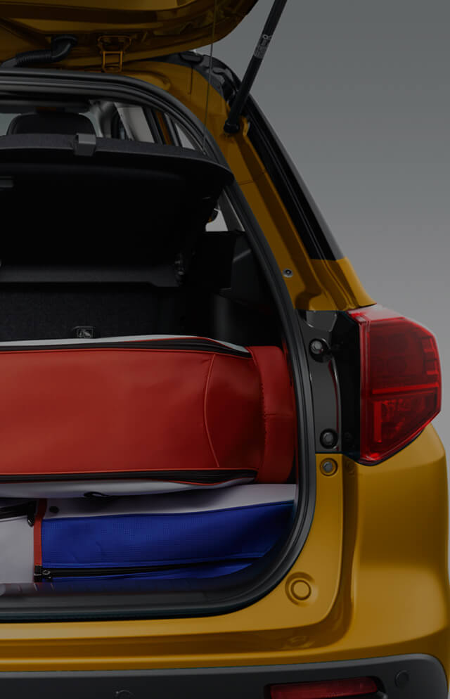 Благодаря широкому проёму багажника, низкой высоте погрузки и внушительному 710-литровому багажному пространству (при сложенных спинках задних сидений)*, новый Suzuki Vitara гарантирует, что вы легко сможете взять с собой всё самое необходимое.